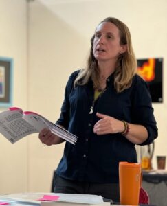 Karin: Kaikessa työssäni aktivistina oli kai jotain rauhoittavaa siinä, että kertomus oli kuin proomu, jota meidän piti kääntää, ja tuo proomu oli itsepäinen ja raskas ja iso… ja hidas. Se oli rauhoittavaa, koska tiesin myös hyvin, miten hitaasti paraneminen tapahtuu. Jokin hitaudessa sai minut ajattelemaan, että parantuminen, jota oli tapahduttava, voisi tapahtua samalla, kun saisimme ihmiset ymmärtämään kärsimyksensä eri tavalla.